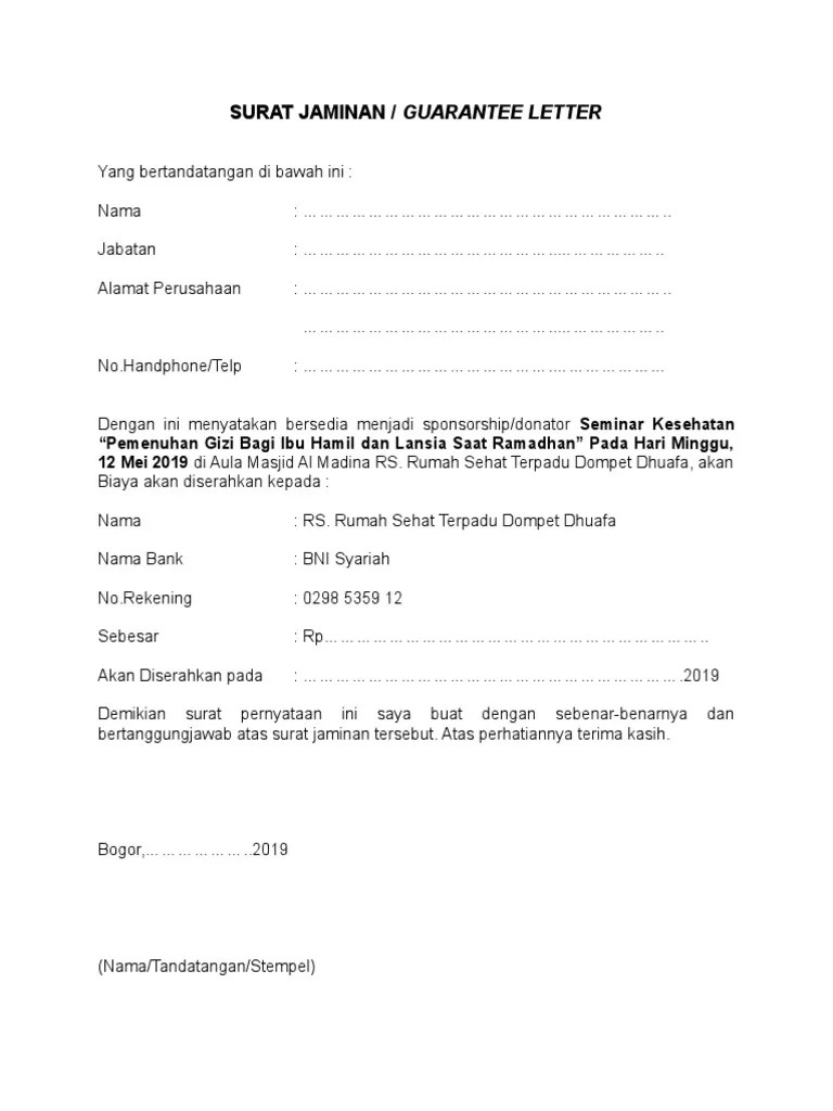 Admin mengumpulkan informasi contoh surat guarantee letter bahasa indonesia.