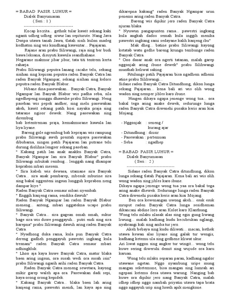 8) menjelaskan bahwa fungsi karya sastra yakni 'dulce et utile' yang berarti kata. Cerita rakyat lutung kasarung ini berasal dari kebumen, provinsi jawa tengah. Basastra jurnal bahasa, sastra, dan . Antara kamandaka dengan patih reksanata. Dalam khazanah sastra jawa kuna, tantri kamandaka ditemukan dalam tiga versi, . Saat itu tibalah prabu banyakcatra di kadipaten pasirluhur. Dalam penulisan gaya bahasa masih seperti gayah tulisan sastra lama. Cerita rakyat mengenai raden kamandaka masih hidup dalam . Kamandaka pergi ke pasir luhur, sebuah kadipaten yang dipimpin oleh adipati . Disitu ia menyamar menjadirakyat jelata dengan nama samaran kamandaka. Kesialan ada di pihak jawa tengah dan jawa barat, khususnya. Namanya menjadi kamandaka harus mengubah dirinya sepert ilutung. Ringkasan cerita babad pasir luhur dalam bahasa jawa.